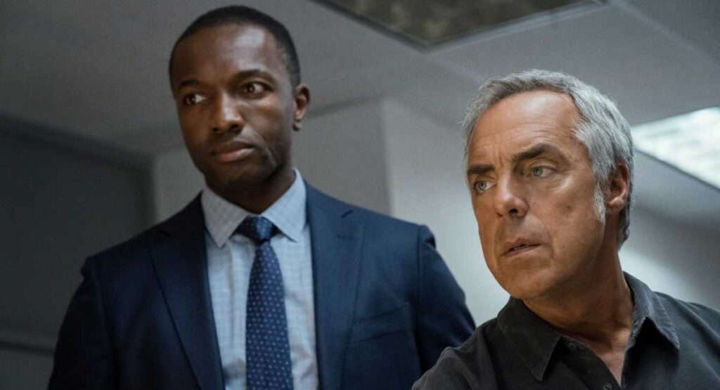 (Слева направо) Джейми Гектор и Титус Уэлливер в фильме Prime Video «Бош». Кредит: Аарон Эпштейн. Авторские права: Amazon Studios.