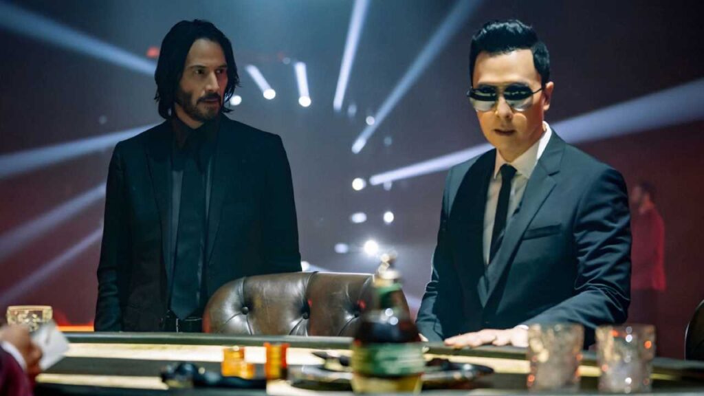 (Слева направо) Киану Ривз и Донни Йен в фильме «Джон Уик: Глава 4». Фото: Лайонсгейт.
