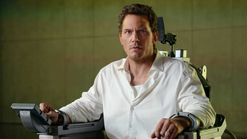 Крис Пратт играет Криса Рэйвена в фильме «Милосердие» от Amazon MGM Studios. Фото: Джастин Любин. © 2025 ООО «Амазон Контент Сервисез». Все права защищены.