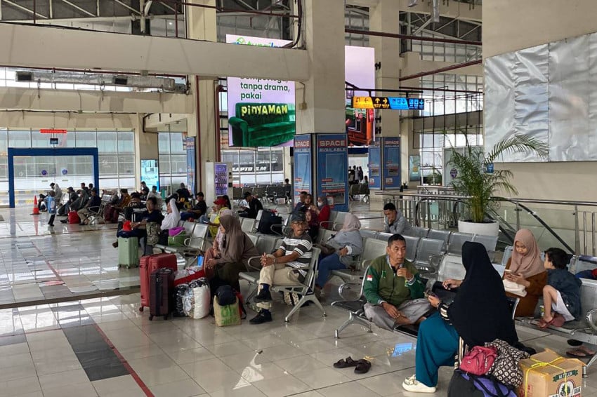 Tinataya ng Pulo Gebang Integrated Terminal, East Jakarta, na ang peak flow ng Eid homecoming ay magsisimula sa Martes, Marso 17 2026. Ito ay dahil ang Ministry of Transportation ay nagsasagawa ng libreng pag-uwi sa parehong oras. Larawan: Achmad Al Fiqri
