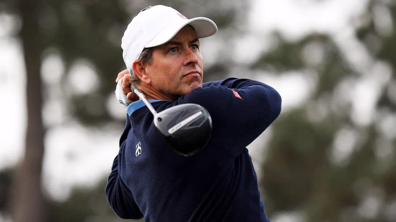 Australialainen Adam Scott pelaa laukauksen kolmannelta tiiltä harjoituskierroksen aikana ennen vuoden 2026 Masters Tournamentia Augusta Nationalissa.Lähde: AFP