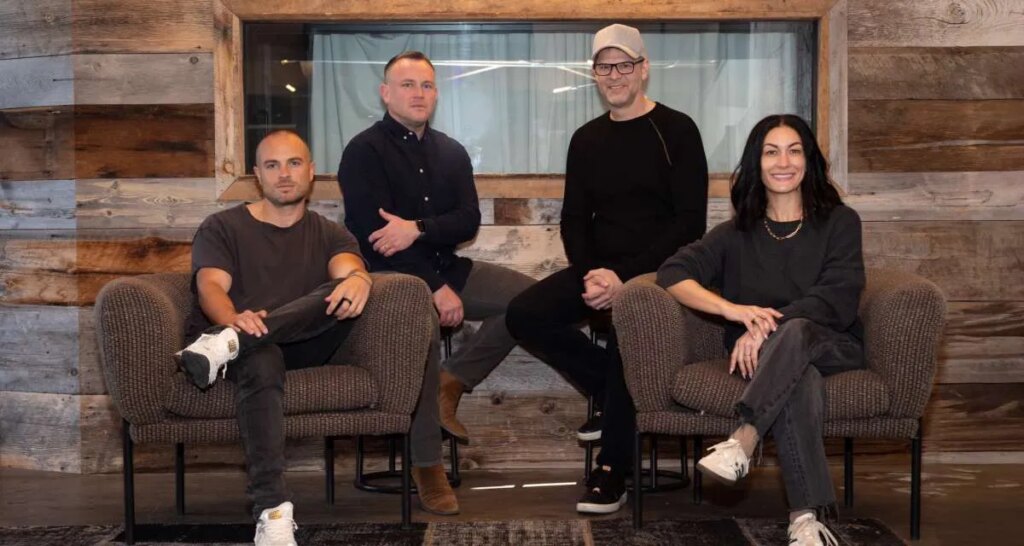 (de gauche à droite) Position Garrett Ream, directeur créatif du label Music, Mark Chipello, président, Tyler Bacon, fondateur et PDG, et Mikelle Schwartz, responsable du marketing du label. Crédit photo : Position