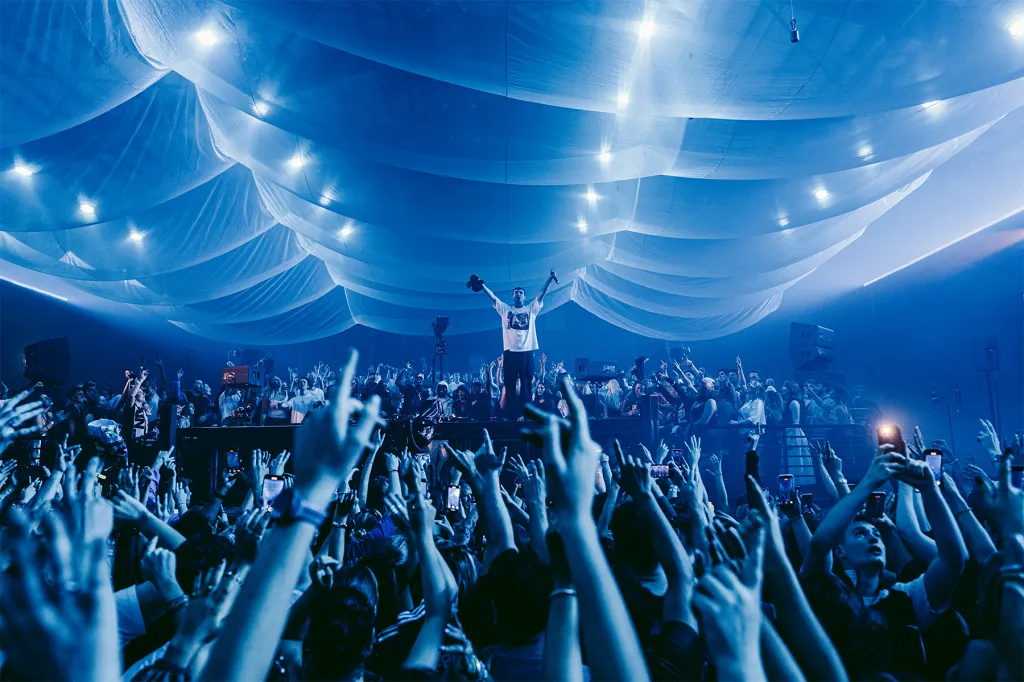 Le ruban scintillant et ondulé de 76 mètres de long en tissu blanc suspendu qui flottait au-dessus de la foule comme un parachute géant illuminé était autant un régal pour les yeux que les spectacles étaient une corne d’abondance de sons palpitants. Désormais, que vous ayez ou non la chance d’obtenir des billets pour la tournée, vous pouvez (re)vivre en personne la majesté de la scénographie unique de l’artiste Boris Acket.