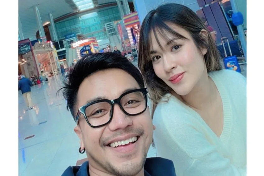 Sina Raisa Andriana at Bubah Alfian sa Dubai Airport ilang sandali bago sinalakay ng Iran. Larawan: Instagram