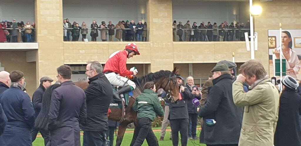 Ballyburn, joka oli ajanut erittäin matalalla vaunulla viimeisenä suurimman osan kilpailusta, yritti nousta katsomoiden sivukaiteeseen, mutta ei löytänyt tilaa. Hänen ratsastajansa Paul Townend joutui sitten ohjaamaan ulos ja menetti mahdollisesti vauhtia prosessissa.