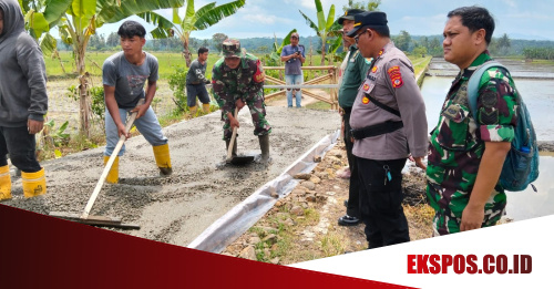 CIAMIS ~ Pessoal da Polícia de Lakbok, Polícia de Ciamis, Polícia Regional de Java Ocidental realizou o humanismo visitando e ajudando em atividades comunitárias na forma de construção de uma estrada de concreto na vila de Sukamulya. A construção desta estrada está em Karangtengah Hamlet, RT 22 / RW 03, Sukamulya Village, Purwadadi District, Ciamis Regency, West Java, terça-feira (13/01/2026).