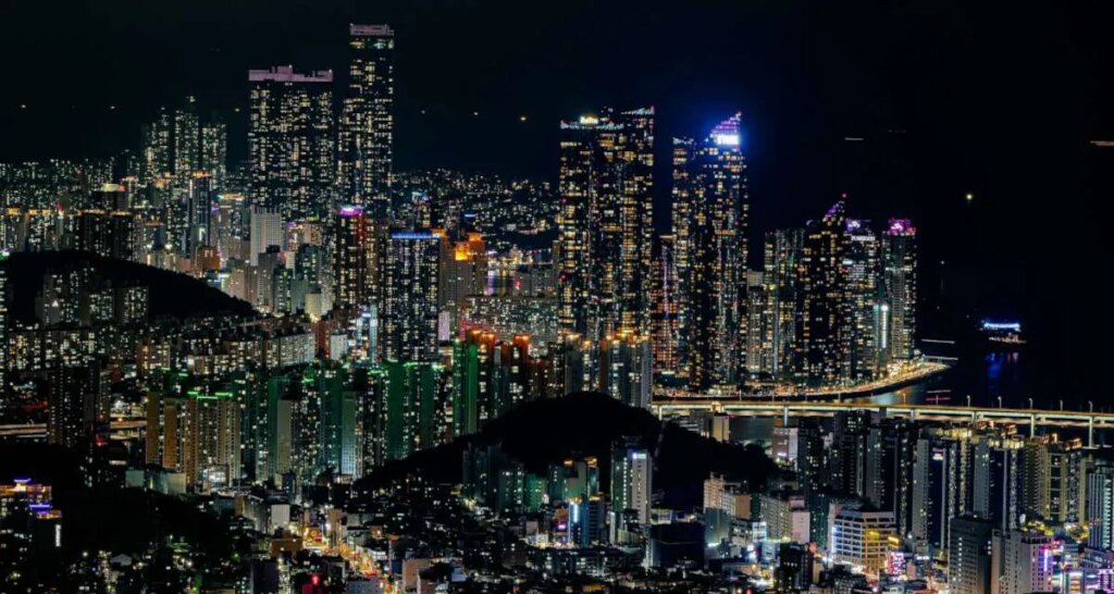 Une photo nocturne de Busan, où se trouve le siège de la Korea Exchange. Crédit photo : Wade Lee