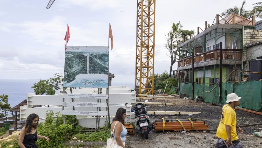 Le gouverneur de Bali, I Wayan Koster, a arrêté la construction d’un ascenseur en verre sur les falaises de la plage de Kelingking, sur l’île de Nusa Penida, dans la régence de Klungkung, en novembre 2025.