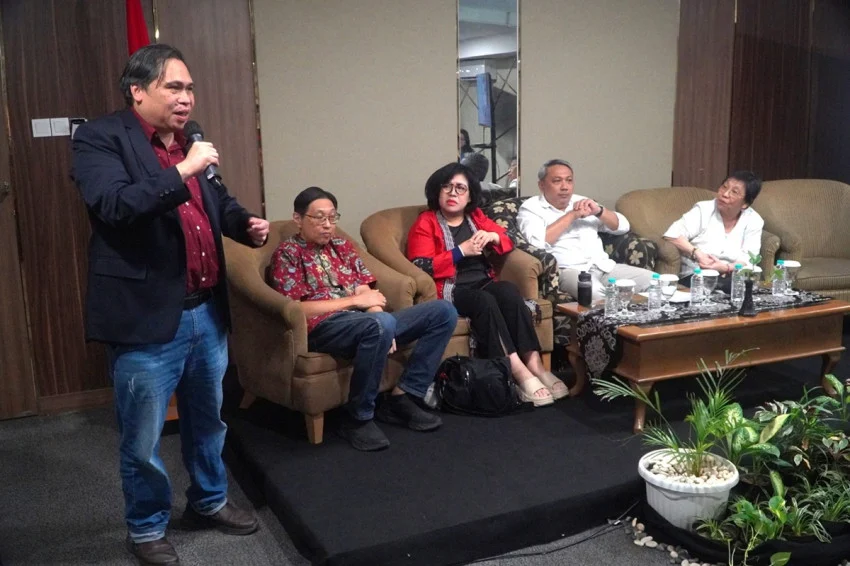 FSI Chairman Johanes Herlijanto, Aspertina Secretary Budiman Tanah Djaya, Director of Communication and Strategic Studies sa Gentala Institute Christine Susanna Tjhin, President University Lecturer M Farid, at BRIN Principal Researcher Thung Julan sa Jakarta. Larawan: Ist