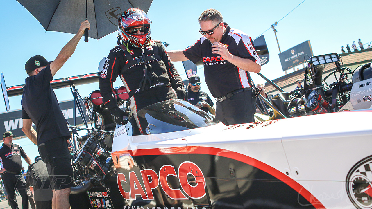 Ensimmäisen korkean lämpötilan kilpailupäivän jälkeen toisen vuoden Funny Car -kuljettaja Spencer Hyde piti väliaikaista kärkeä karsinnassa. Kanadalainen kilpailee melko kaukana mukavuusalueeltaan yli 100 asteen kuumuudessa, mutta on uransa ensimmäisen ammattilaisvoiton partaalla.