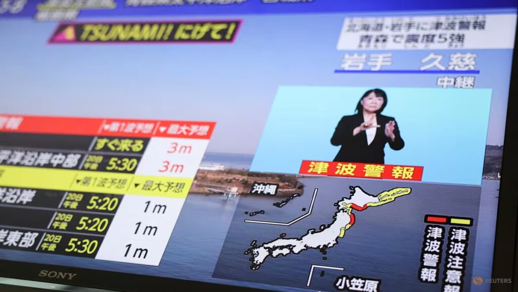 Des vagues de tsunami ont été observées dans plusieurs zones côtières du nord du Japon. Des vagues atteignant 80 cm ont été enregistrées au port de Kuji, dans la préfecture d’Iwate, à 17 h 34, heure locale, peu de temps après que des vagues de 70 cm aient également été détectées dans d’autres ports de la région.