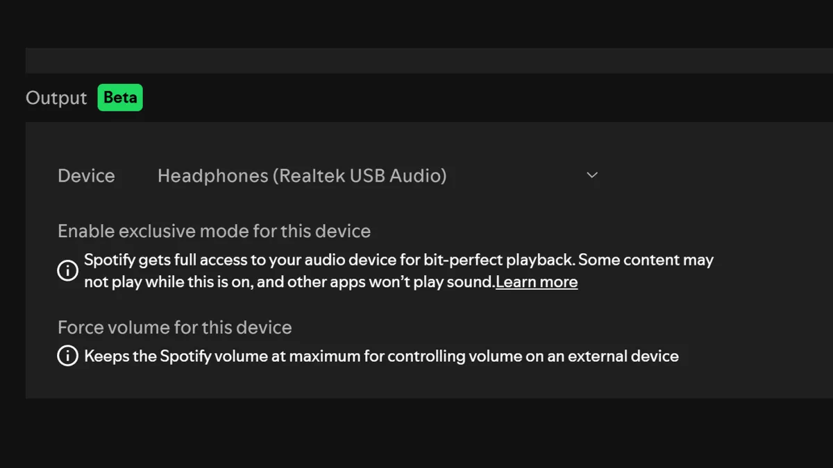 Spotify a annoncé Mode exclusif, désormais disponible dans l’application de bureau Spotify Windows pour les abonnés Premium. La fonctionnalité permet une lecture bit-perfect, la société notant qu’elle “se marie parfaitement avec Lossless activé pour la qualité audio la plus pure”.