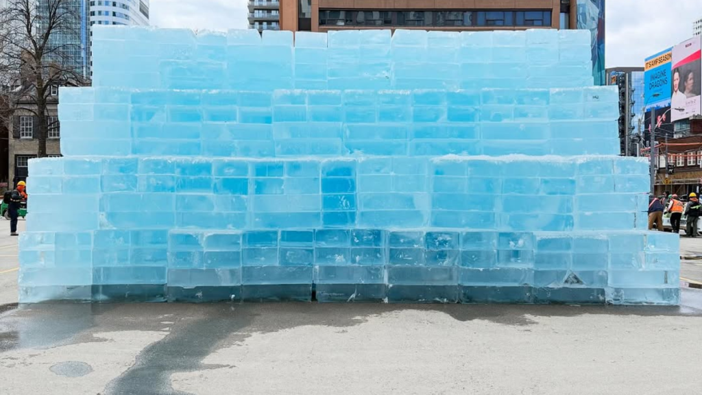 La police de Toronto a temporairement bloqué la sculpture de glace promotionnelle de Drake, cachant les informations sur l’album, afin de la protéger des fans qui tenteraient de la briser et de la faire fondre.