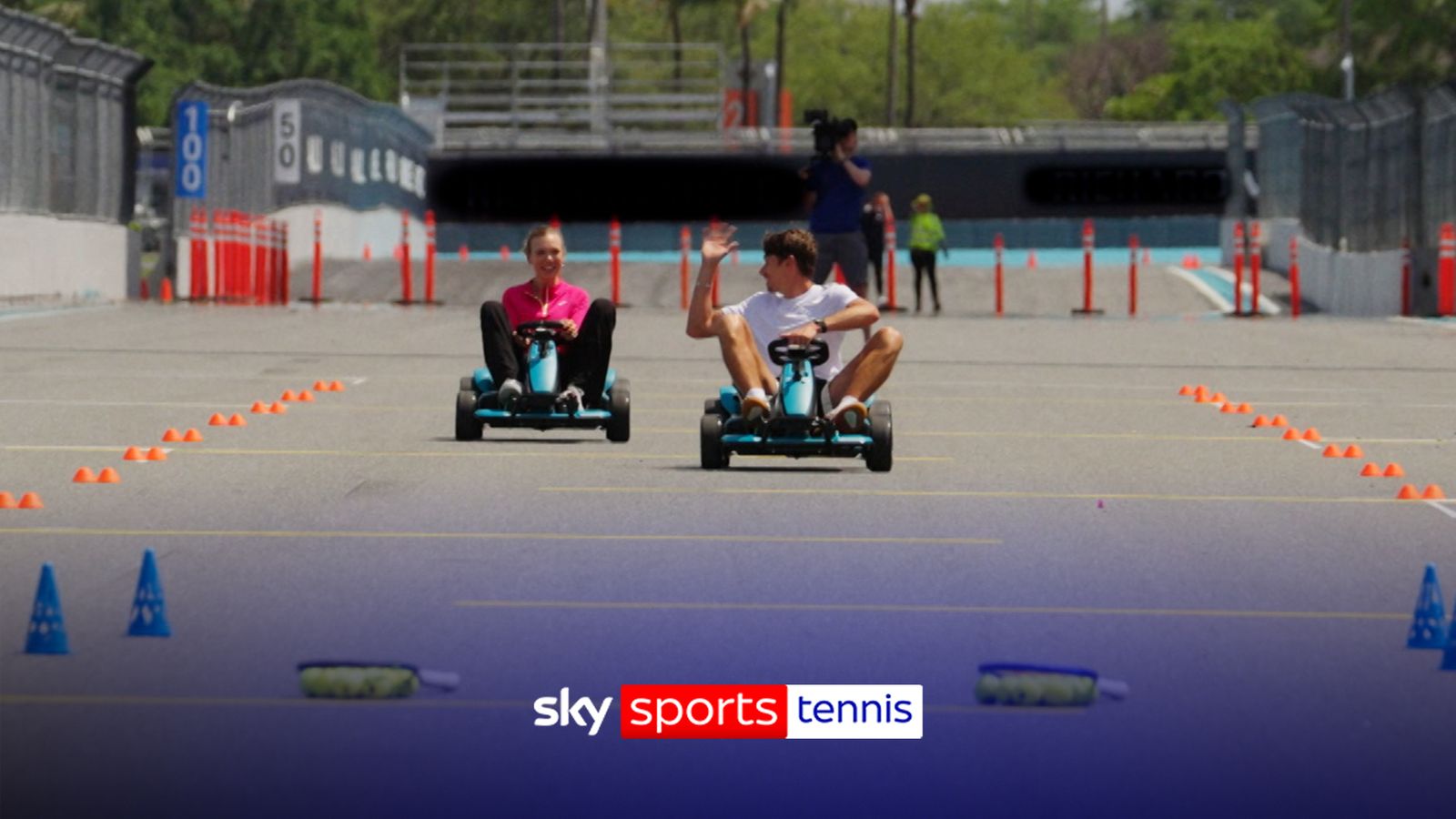 Kihlapariskunta Alex de Minaur ja Katie Boulter nauttivat kevyestä haasteesta Miamin F1-radalla ystävällisellä vedolla: “Luuserin täytyy pestä pyykkiä viikon ajan!”