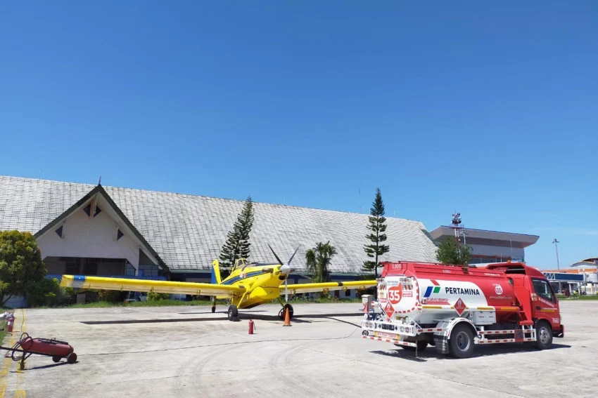 Area Manager Communication, Relations & CSR PT Pertamina Patra Niaga Regional Kalimantan, Edi Mangun said that paghahatid ng gasolina Ang One Price noong Sabado (21/2) ay ipinatupad gamit ang isang fleet ng Air Tractor AT-802 aircraft upang ipamahagi ang mga produkto ng Pertalite sa 3T Krayan gas station.