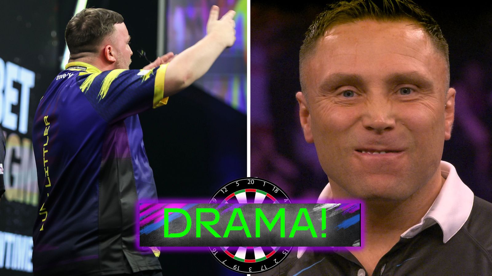 Luke Littler nautti neljännesvälieräottelunsa kahdeksannen osaottelun voittamisesta Gerwyn Pricea vastaan ​​Valioliigan iltana 6 Nottinghamissa.