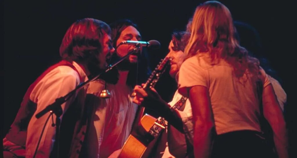 Une performance de Supertramp en 1979, avec le bassiste Dougie Thomson en premier à gauche. Crédit photo : Rs3