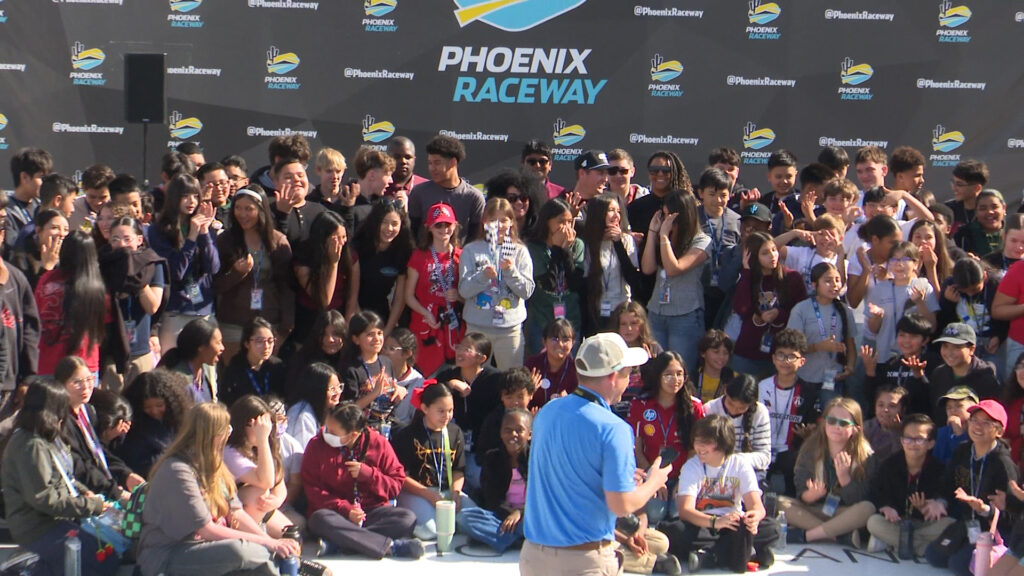 Kuka valitsi NASCARin villin lapsen viettämään aikaa 130 5.–8. luokkalaisen kanssa Estrella Vistan STEM-akatemiasta Phoenix Racewaylla?