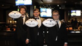 UncategorizedPoikkeuksellisia opiskelija-urheilijoita kunnioitettiin ja tunnustettiin lauantai-iltapäivänä Chandlerissa National Football Foundationin 45. vuosittaisessa Scholar Athlete Awards -juhlatilaisuudessa, jota isännöivät Bill Riddle Chapter ja Gila River Resorts. Sekä jalkapallosta että lippujalkapallosta palkitun 34 seniorin joukossa oli kolme pelaajaa Shadow Ridge High School in Surprisesta. Stallioneja edustivat turva-/linebacker Daniel Lesan, linebacker Nate Pearson ja hyökkäävä linjamies Rocco Riesland. […]