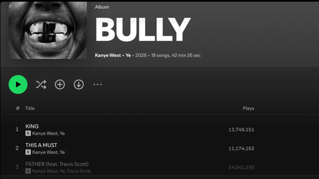 Un autre problème majeur pour les plateformes de streaming était apparemment la débâcle avec West qui a changé son nom en Ye. Certains DSP semblaient se demander si la sortie faisait partie du profil d’artiste officiel de Kanye West ou du profil de Ye, qui étaient répertoriés séparément. Désormais, les deux noms apparaissent sur l’album.