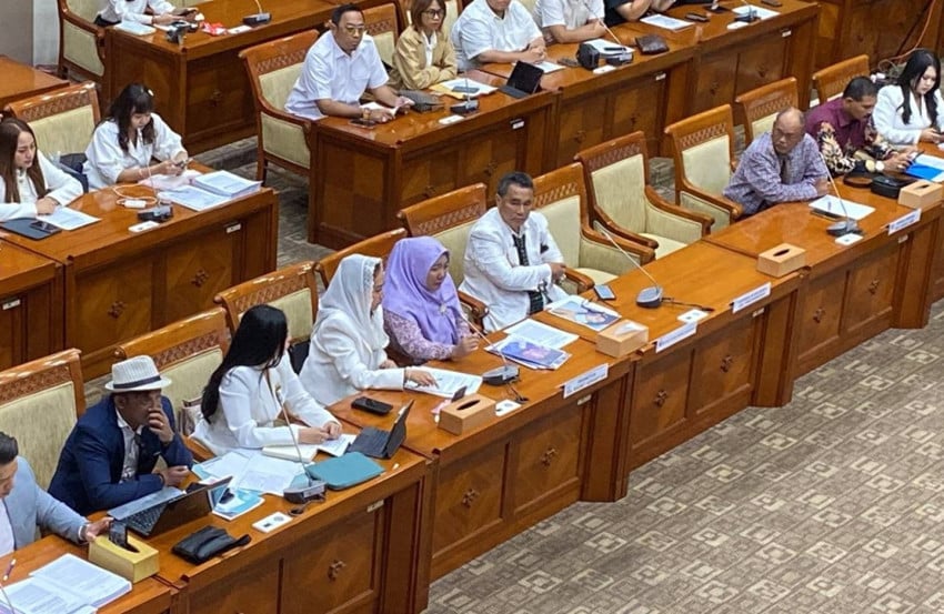 Ang sikat na abogado na si Hotman Paris Hutapea sa Public Hearing Meeting (RDPU) kasama ang Commission III DPR RI Parliament Complex, Senayan, Central Jakarta, Huwebes (26/2/2026). Larawan: Achmad Al Fiqri