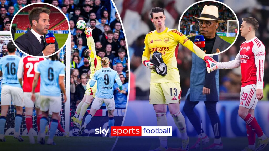 Jamie Redknapp ja Ian Wright keskustelevat siitä, olisiko Kepa Arrizabalagan pitänyt aloittaa Carabao Cupin finaali Arsenalin ykköspelaaja David Rayasta, kun Kepan virhe antoi Man Citylle avausmaalin.