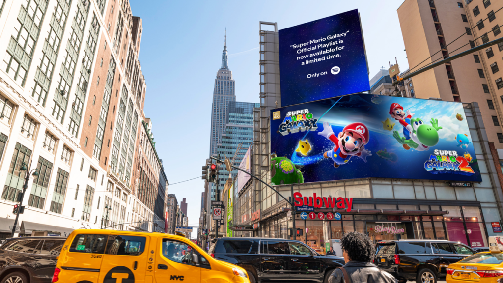 Spotify lance une campagne mondiale pour la sortie de « The Super Mario Galaxy Movie », présentant une sélection de morceaux des jeux vidéo Super Mario Galaxy.