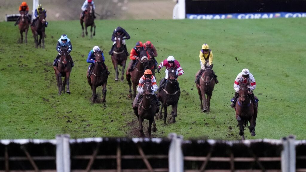 Black Hawk Eagle ja Milan Tino ristiriidassa tässä Helen & Sharonsin 60-vuotissyntymäpäivät Novices’ Handicap Chase.