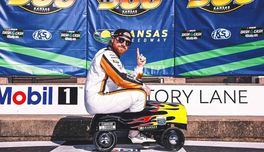 Reddick karjui ohi Kyle Larson Jatkoajan viimeisellä kierroksella voittaakseen Kansas Speedwayn sunnuntaina, jolloin hänestä tuli neljäs kuljettaja, joka on voittanut viisi yhdeksästä ensimmäisestä osakilpailusta NASCARin huippusarjassa kauden aikana. Chase Briscoe päättyi kolmannella kerralla Denny Hamlinjoka omistaa 23XI Racingin yhdessä Jordanin kanssa, joutui katsomaan neljänneltä, kun hänen kuljettajansa saavutti jälleen voittokaistan.