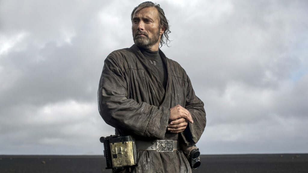 Mikkelsen a également déclaré qu’il était physiquement mal à l’aise sur le plateau, en particulier lors d’une scène qu’il avait tournée sous la pluie avec de l’eau glacée lui tombant sur le visage. Mais il trouvait que le film était « mignon » et qu’il aimait le regarder. Les « deux jeunes héros » auxquels il fait référence sont Jyn Erso (Felicity Jones), la fille de Galen, et Andor (Diego Luna), qui a ensuite eu sa propre série télévisée dérivée.
