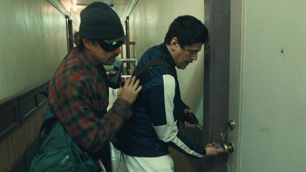 Florencia Martin (décoratrice) : Revenons à la façon dont El Paso était accommodant, parce que leur centre-ville est essentiellement une préservation fermée de bâtiments historiques, il n’y a plus vraiment de commerce là-bas. Donc pour moi, c’est un rêve, car vous ne cachez pas un Starbucks ou un fast-food. C’est juste une toile vierge. Et tout au long du film, nous avons voulu que tout soit pratique à 360 (degrés). Nous avons donc réalisé tous les éclairages et la caméra avec Anthony, notre décorateur. C’était donc vraiment amusant de restaurer ces rues et ces devantures de magasins et de voir à quoi elles ressembleraient la nuit. Et puis El Paso était une ville incroyablement accommodante parce qu’en gros, ils nous ont imposé un confinement complet pour ces quatre pâtés de maisons en cercle. Ainsi, toutes les séquences de conduite, puis ces scènes, nous avons pu complètement verrouiller et fermer et créer du feu et une atmosphère. C’est donc la façon la plus bénie de travailler.