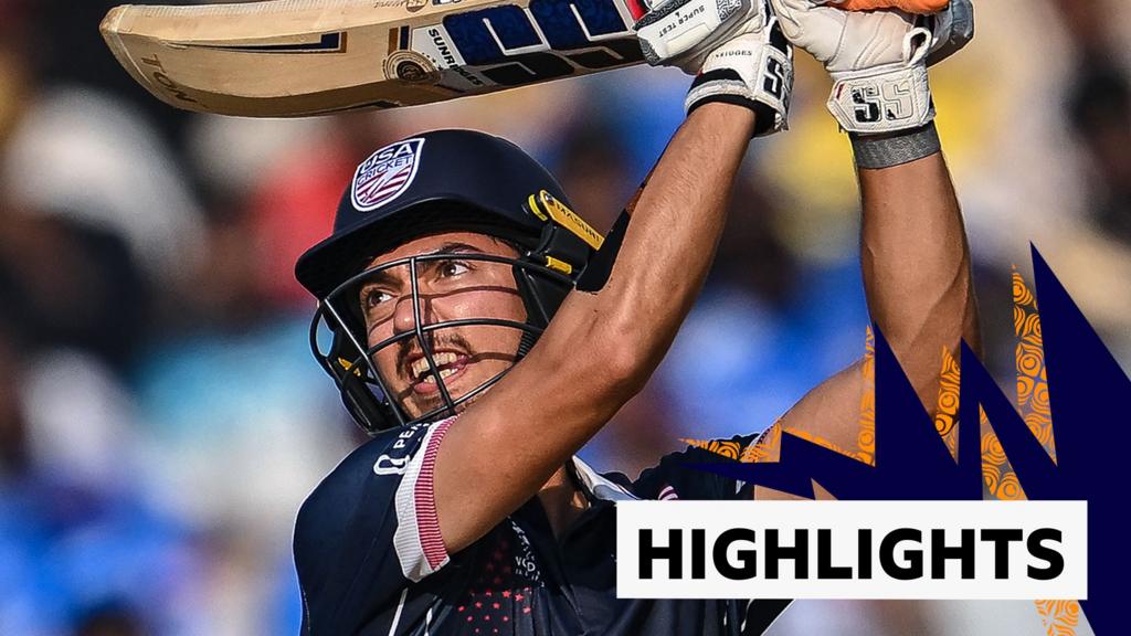 Sanjay Krishnamurthi näyttelee mailan kanssa, kun Yhdysvallat ohittaa Namibian 31 juoksulla pysyäkseen Super 8 -paikan metsästämisessä saatuaan toisen lohkovaiheen voittonsa.