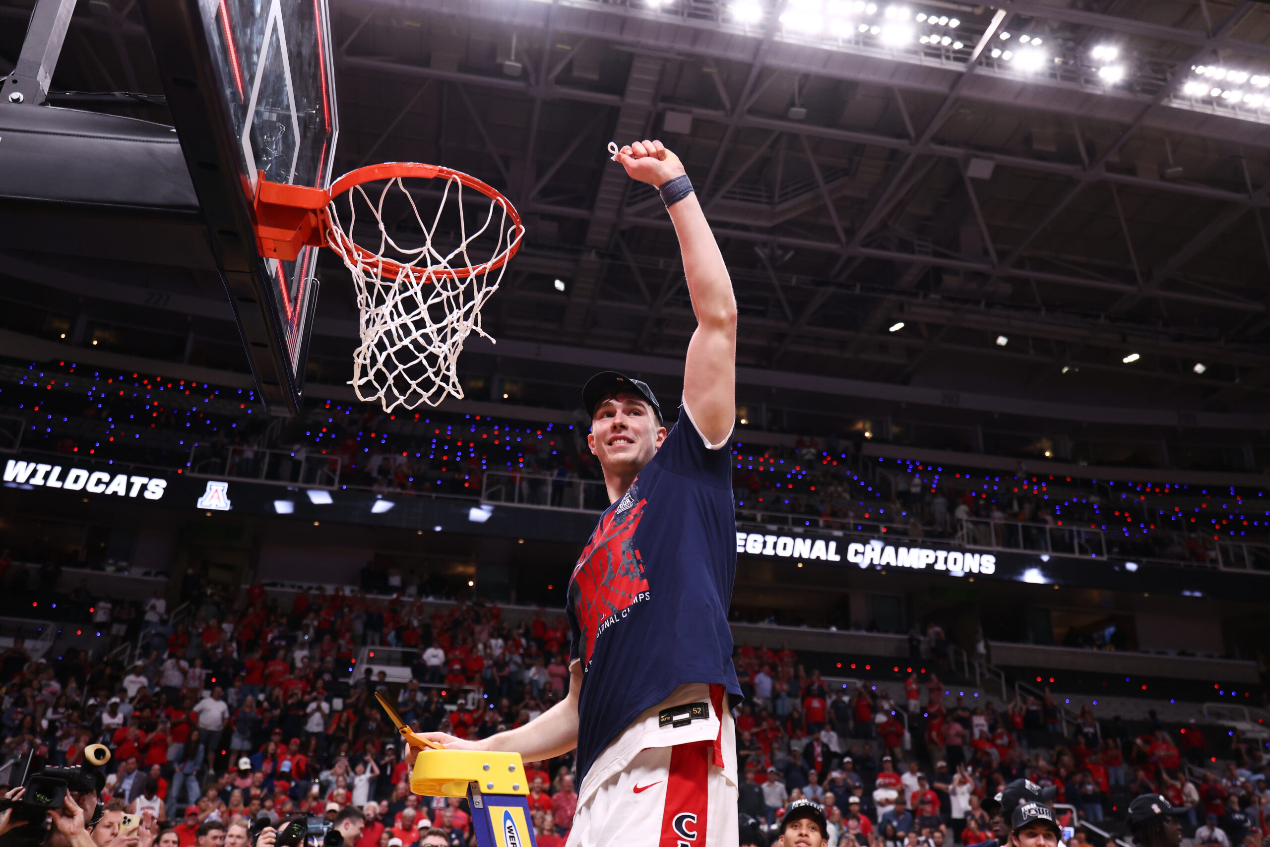 Big 12 -isäntäkansleri Johnson tavoitti Arizonan suurmiehen Motiejus “Mo” Krivaksen matkallaan miesten neljänteen finaaliin ja Wildcatsin välieräotteluun Michigania vastaan.